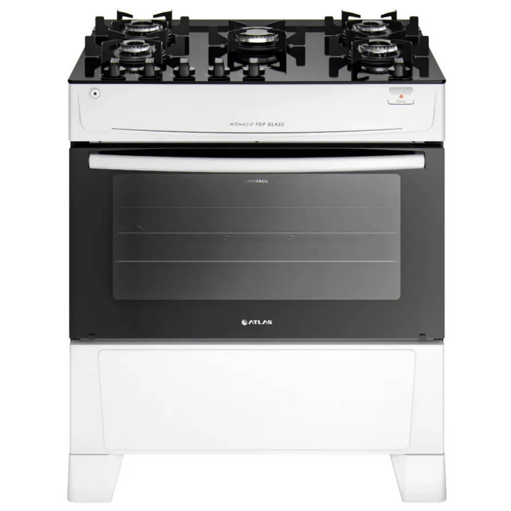 Fogão Atlas Mônaco 5 Bocas Top Mesa de Vidro Automático Branco Bivolt