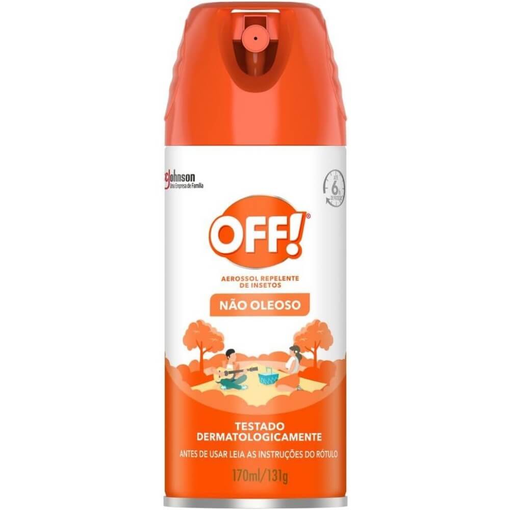 OFF! Aerossol é prático de usar e protege por até 6 horas, garante proteção contra mosquitos, inclusive contra o aedes aegypti, mosquito que pode transmitir o Zika vírus, a Dengue, a febre Chikungunya e a Febre Amarela. É dermatologicamente testado e pode ser usado em crianças acima de 12 anos.